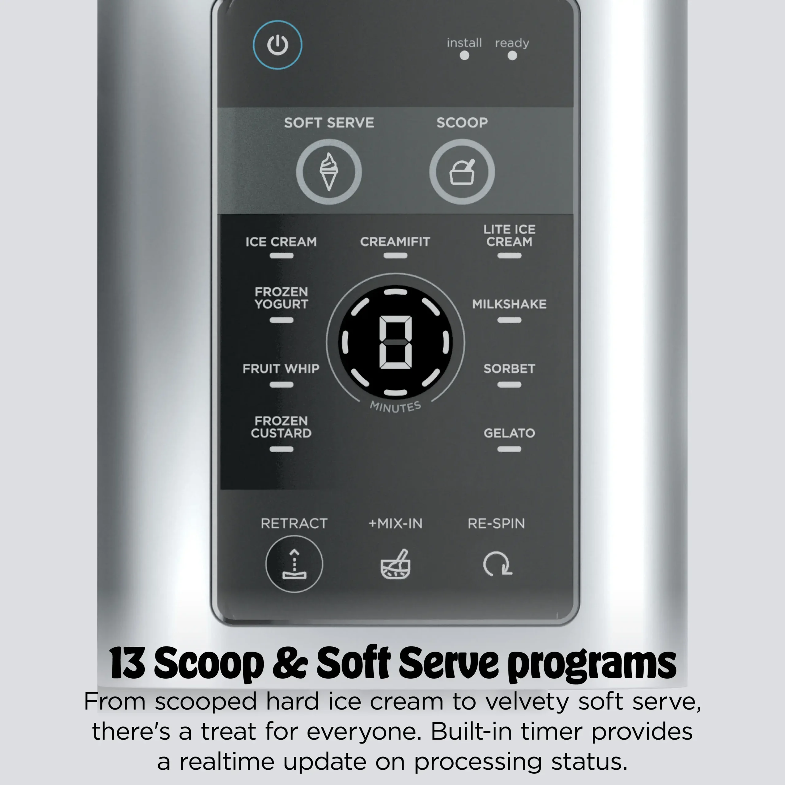 13 unique one-touch programs. Customize flavors and choose between classic scooped or swirled treats.